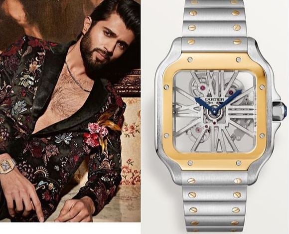 vijay deverakonda has been shared from the instagram page named 'the_tollywood_closet', in which the actor is seen wearing a luxury wrist watch. According to the information given with the picture, this watch is from the collection of luxury brand 'Cartier'. However, its price is shocking. Yes, according to the information, the price of this watch is Rs 28,30,000. However, it is the look of this watch that justifies its price tag. gold finishing has been done on the dial of this watch which comes with a silver color chain, giving it a very classic look.