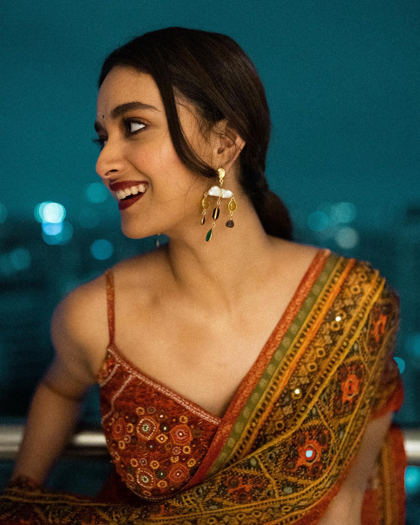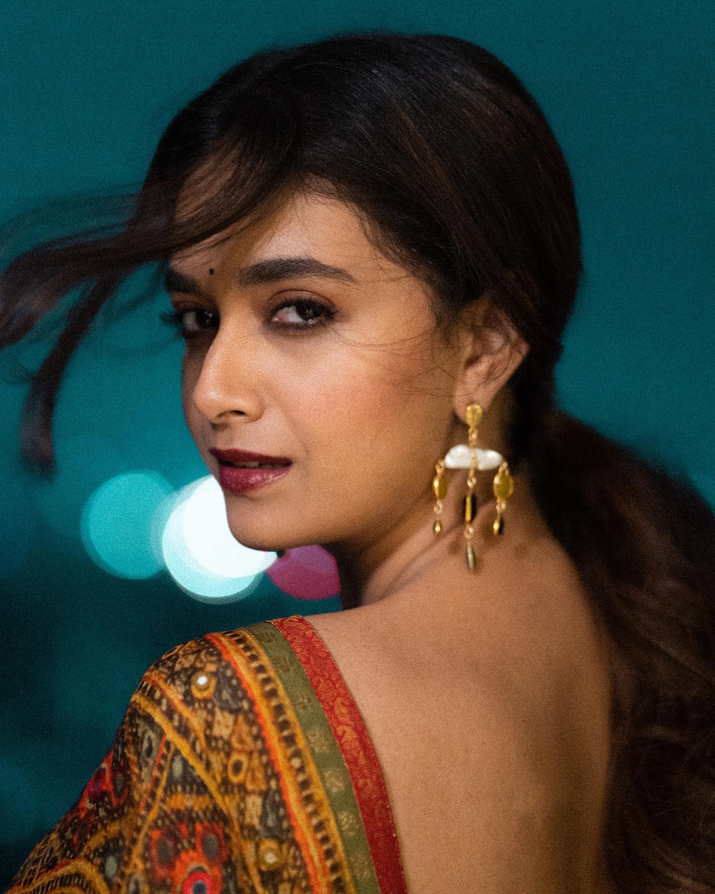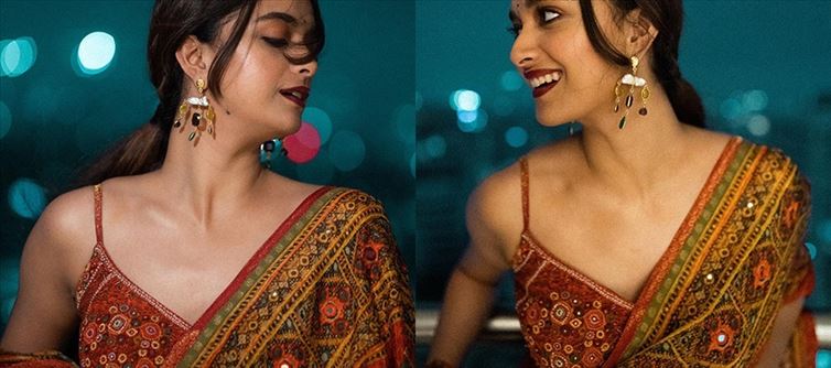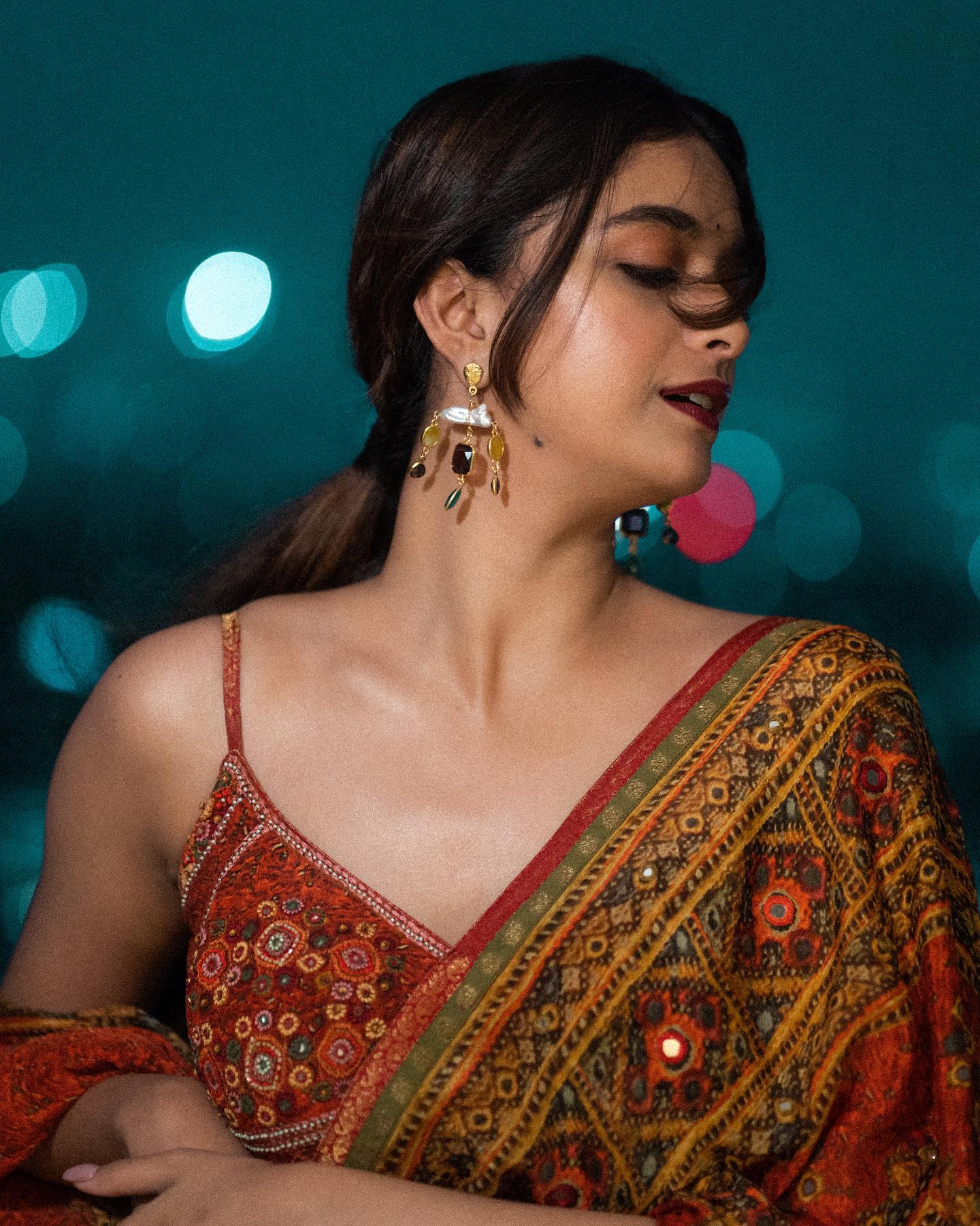 The beauty has uploaded a series of photos of herself in the Ritu Kumar ensemble. The mahanati starlet wore a specific ethnic outfit with a mirror embroidery dupatta, as can be seen. She finished off her outfit with a low ponytail and bold earrings. With black lipstick, she was able to add some power to her outfit. All we can say is, Keerthy was just "WoW" in the photos and we just can't stop staring at her.