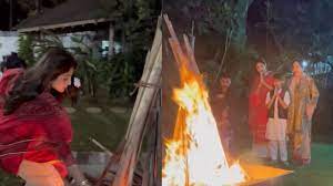 Sharing the post, the actress wrote, 'This is a ritual we do every year on Holika Dahan. This festival reminds us that with faith and devotion, god always protects you and you always burn negativity to ashes and fill your life with colors of positivity and love, may this holi bring you happiness, prosperity And may great health be brought to you and your loved ones. Happy holi to all of you'.