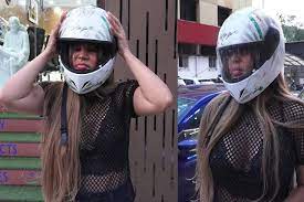 A video of rakhi sawant is going viral on social media. In this video, she is seen walking and running on the road wearing a helmet. When paparazzi asked her the reason behind this, the drama queen said that she has to hide her identity. Rakhi is saying in the video that 'Friends, leave me, I have to hide my identity.'