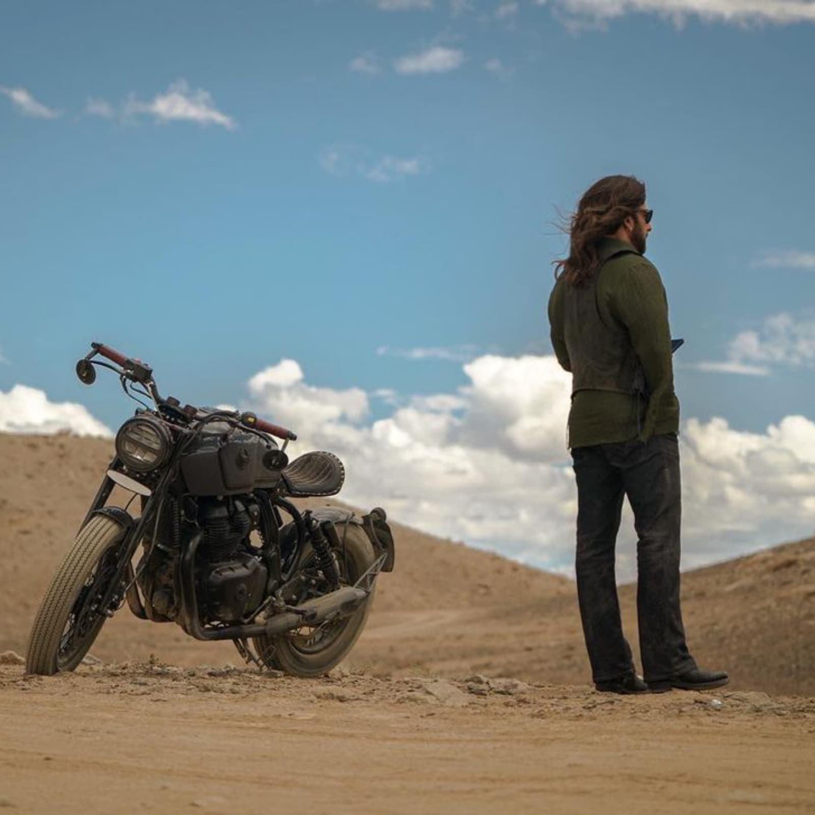 Actually, recently salman khan has shared a picture on his instagram account. In this photo, salman khan is seen in increased hair and beard. He is wearing a jacket and wearing black glasses, he looks very stylish. At the same time, in this picture a bike is standing behind him and the place where he is standing is admiring the beautiful view. See here this picture of salman khan is going viral-
