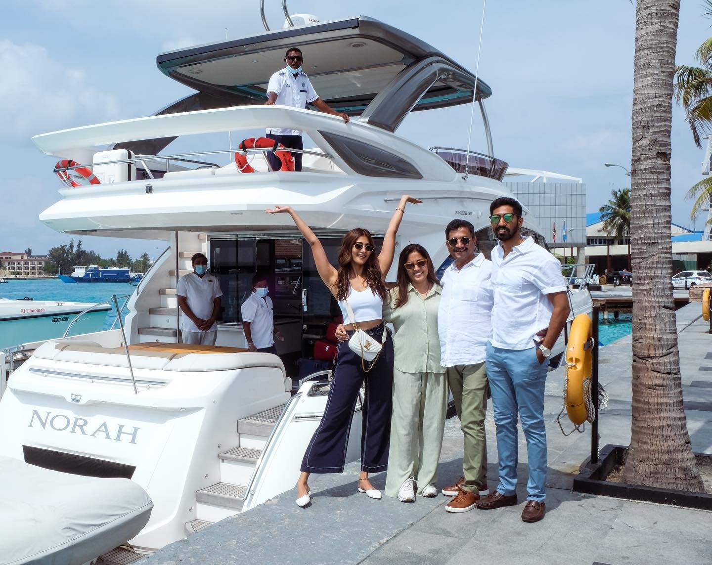 pooja hegde has been a hit in both bollywood and the South. The radhe shyam actress has returned to the maldives for the first time in 13 years with her family. The actress posted a beautiful holiday photo on her instagram account, in which all of the cast members are seen relaxing on a yacht. The actress is enjoying her mom's birthday along with her dad and brother on the Yacht.