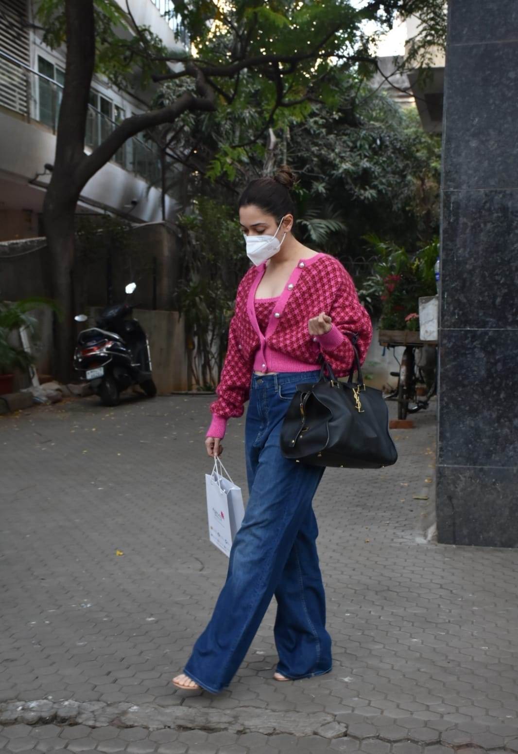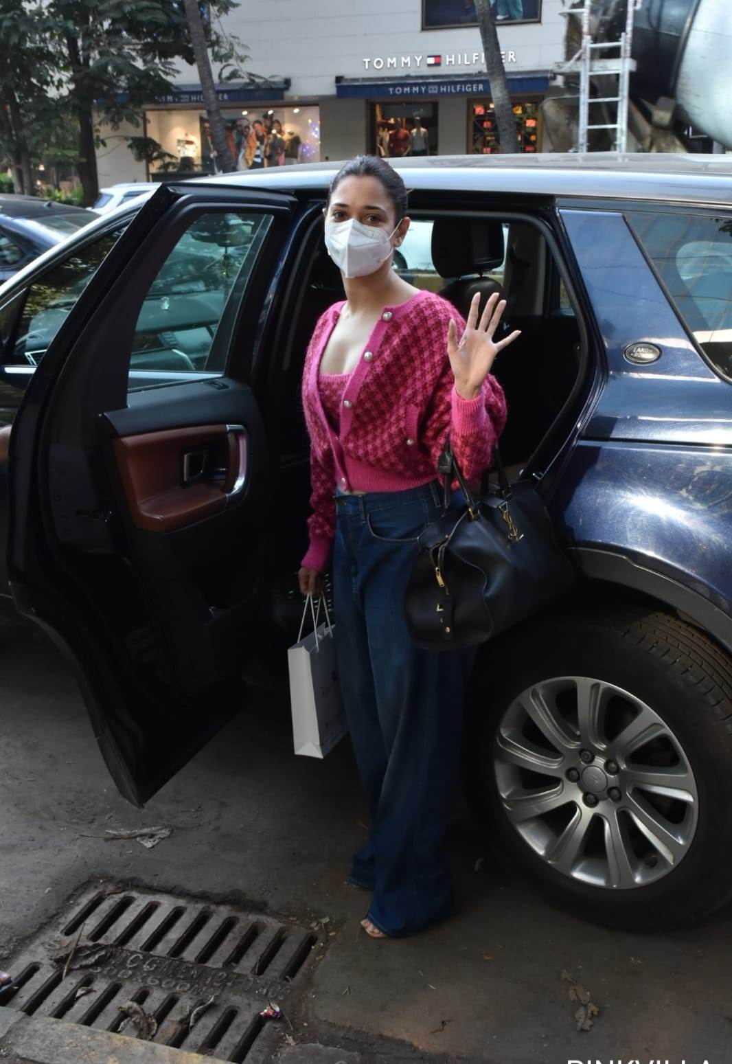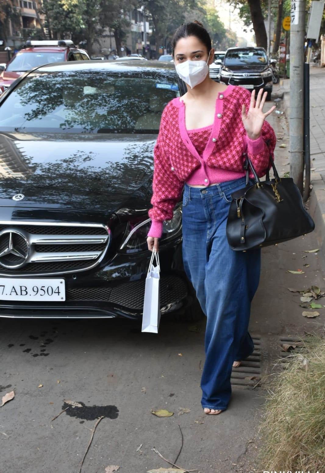 tamannaah bhatia was photographed in mumbai today, and her fashion statement caught our eye. The Sye Raa actress is wearing a pink sweater and big denim in the images. The Baahubali heroine finished off her ensemble with a tight hairstyle and a black handbag. tamannaah bhatia ensures that she looks her best every time she ventures out. Her charming persona and fascinating beauty are present in all of these ensembles.