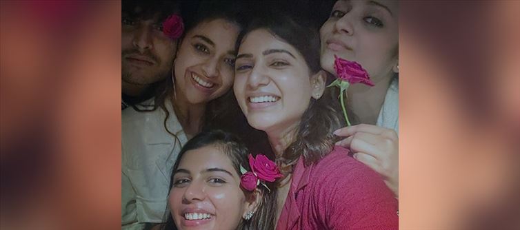 samantha, keerthi suresh, Trisha, and Kalyaani Priyadarshan, all from the South, joined together for a delightful evening in October. The four women were spotted within, surrounded by roses and having a nice time. samantha saved this encounter and uploaded photos from the night on her instagram account. The women were all dolled up in stunning outfits and gathered for a group picture. samantha and Keerthy suresh also took another photograph alongside.