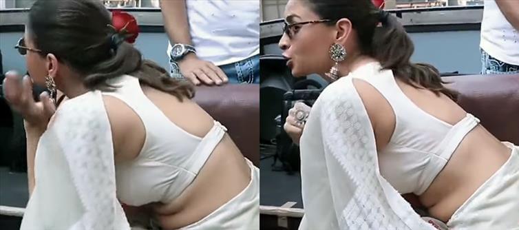 Alia Bhatt crouched hastily while posing for pictures. The photographers lifted the branches up when they came close to touching her head. "Woah waala araha hai (A few many others are coming)," the camera persons said as another few branches were going to brush against her. alia concealed her head with one end of her saree. After the photographers informed her that there were no more branches, she removed it.