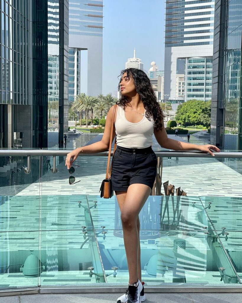 In a place like Dubai, where the weather is hot and humid practically all year, shorts are a convenient way to go around. Shivathmikaa, on the other hand, nailed the appearance. She also wore sunglasses and brought a cute shoulder purse to add to her look. She wore her wavy hair down and went for a dewy look with her makeup. Her sensual costume is upping the oomph factor yet again, enthralling her social networking admirers.