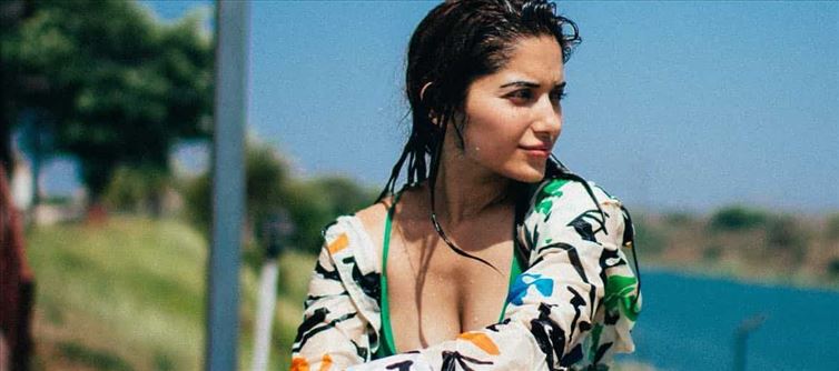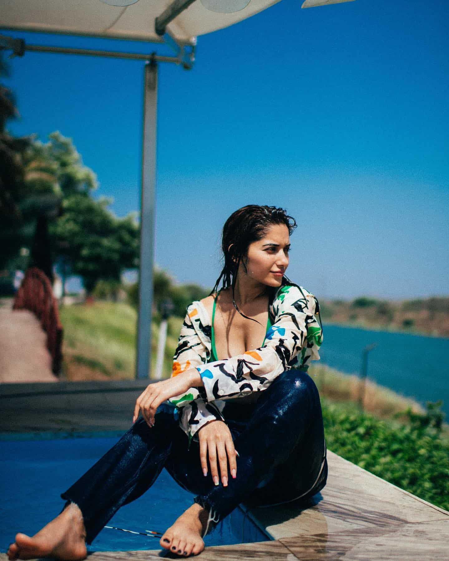I'm sitting by the pool. Ruhani is dripping wet and showing off her razor-sharp cleavage. Her looks are piercing enough to pierce the hearts of all her fans when seen from the side. Meet Cute, Ruhani Sharma's upcoming telugu film, is her next project. With this film, Nani's sister makes her directorial debut. With the film Agra, she will also make her bollywood debut.