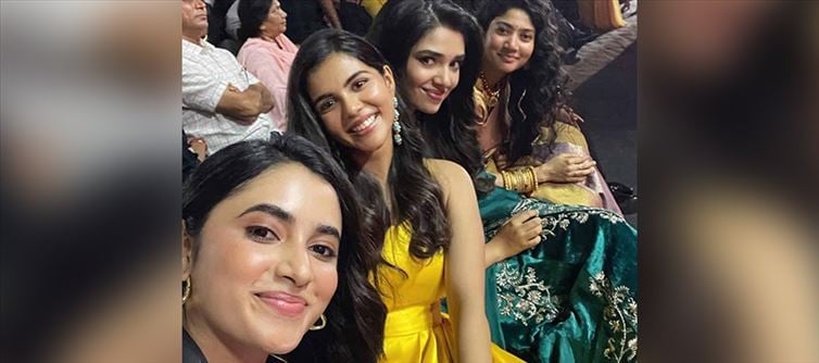 This is one of those images. kalyani Priyadarshan, priyanka Arun Mohan, Krithi Shetty, and Sai Pallavi, all young stars, posed together for this adorable selfie. They appear to be four angles in one picture. The photo was taken at a recent awards ceremony. On instagram, kalyani posted this shot. However, as soon as this photo was uploaded it got several vulgar comments from netizens as they can't control their temptations to see the beauties together.