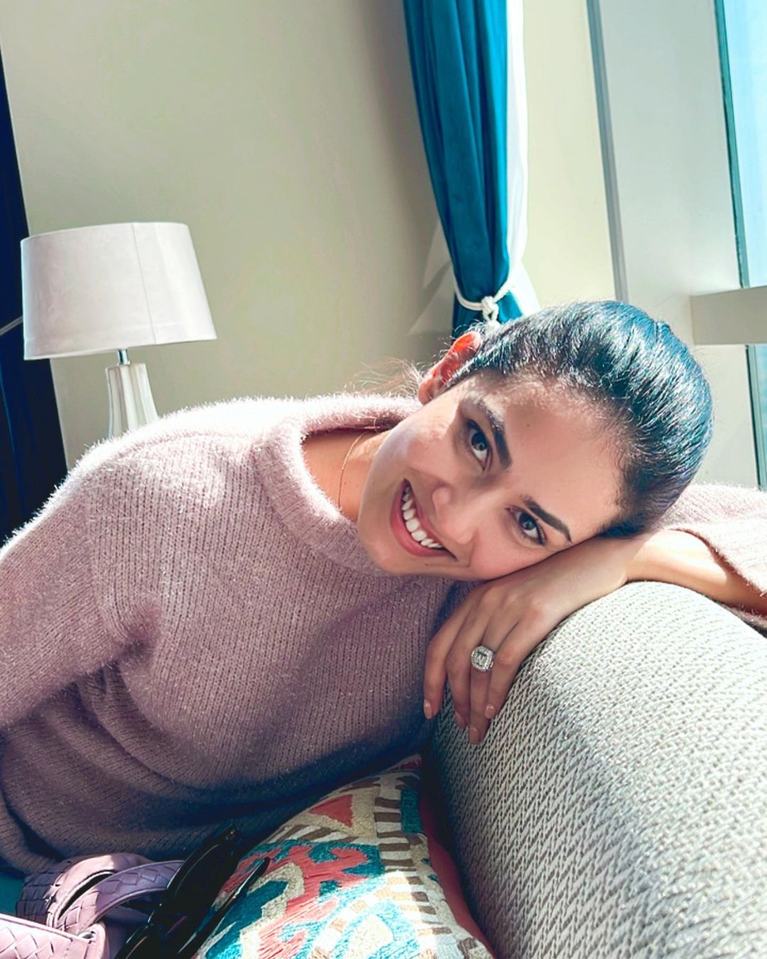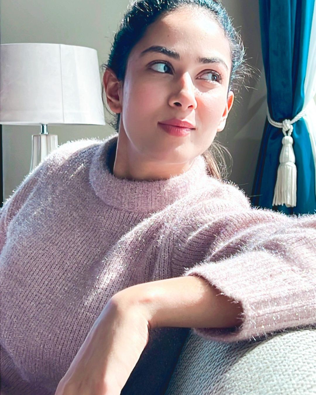 Mira's look, she wore a simple pastel pink sweater and kept her makeup minimal. Her rosy cheeks and pink lips complemented her look very well. To make this winter look perfect, the actress tied her hair in a ponytail.