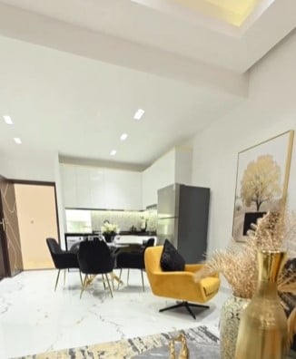 The kitchen of Tejashwi Prakash and karan Kundrra's dubai home is also very luxurious. A black colored dining table has also been placed near the kitchen, which is further enhancing the beauty of the kitchen.