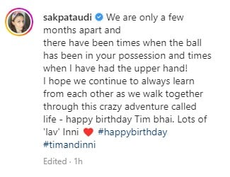 As beautiful as this video is, equally lovely is the caption written with the video. In this note, Soha has written on behalf of Inaaya, "We are only a few months older than each other. During this time, many times you have had the ball and many times I have had the upper hand! Happy Birthday." Ho Tim bhai. Lots of 'love' ini."
