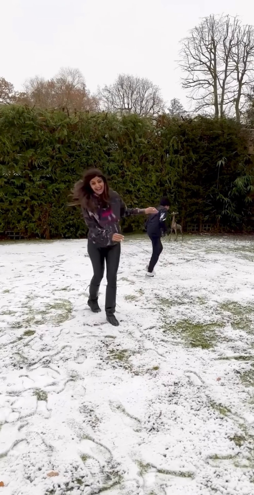 Recently, actress shilpa shetty shared a video on her instagram account, in which she is seen enjoying snowfall with her two kids Viaan and Sameesha.