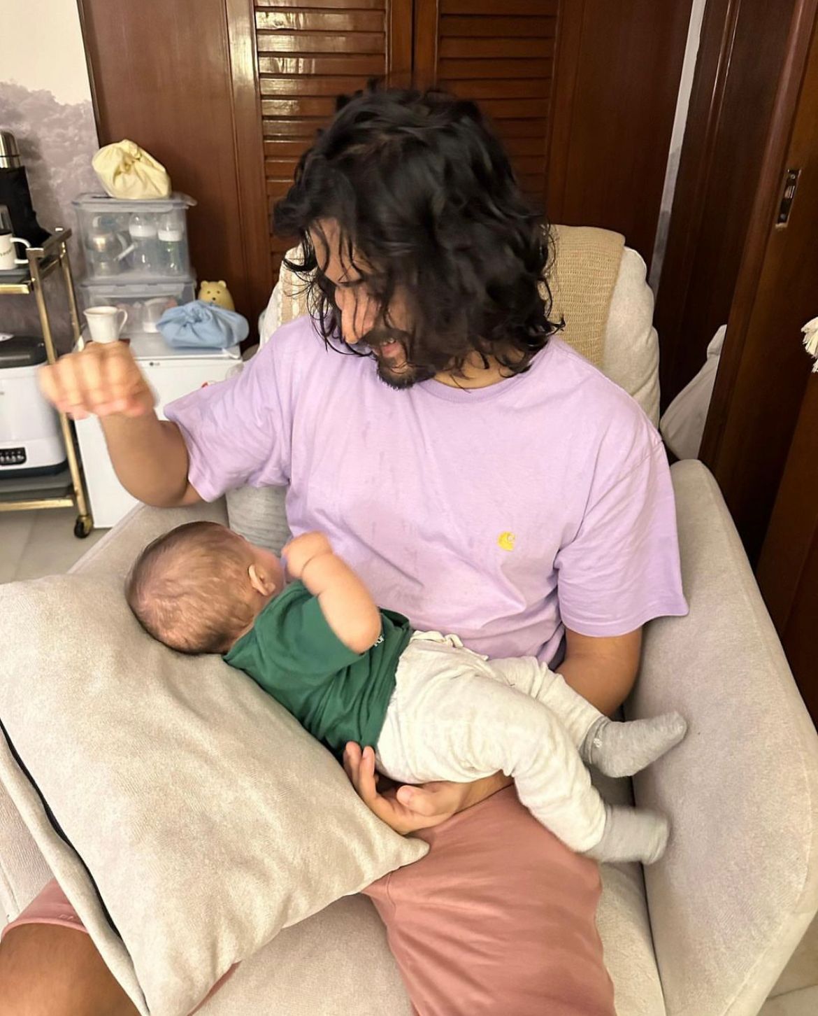 Sonam is an active social media user and often shares beautiful glimpses of her happy life. For instance, on 9 december 2022, the actress shared a cute picture of her son Vayu Kapoor Ahuja and her brother harshvardhan kapoor on her instagram handle. In the priceless picture, we can see Vayu sleeping peacefully in his maternal uncle's lap. In the picture, Sonam's son can be seen dressed in a green T-shirt and trousers. Bindass Mamu, on the other hand, looked handsome in a T-shirt teamed with pink shorts.