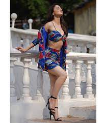 Sanjeeda Sheikh chose a blue colored printed bikini set for one of her photoshoots. To add charm to her look, the actress complemented it with a shimmery cape with sheer texture. He tucked his cape into his waist with a thin coffee belt and completed his stylish look with knee-high shoes. Winged eyeliner, shimmery eyeshadow, highlighted cheeks and sleek ponytail completed her look.