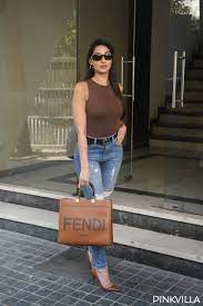 nora fatehi was spotted by paparazzi on the evening of 26 february 2023. During this, he adopted a casual look. She paired a brown ribbed tank top with blue high-waist denim jeans and a black belt. Nora also wore brown colored heels and was dazzled in black goggles.