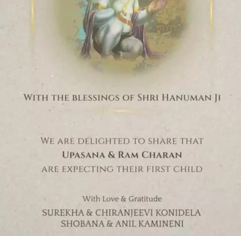 When ram charan and upasana Kamineni announced their pregnancyRam Charan and upasana Kamineni are currently on cloud nine as they are expecting their first child. The couple announced the good news of their lives through a heart-warming picture note which had Lord Hanuman's picture on it. The note read, “With the blessings of Shri Hanuman ji, we are happy to inform that upasana and ram charan are expecting their first child. With love and gratitude, surekha and chiranjeevi Konidela, shobhana and Anil Kamineni."