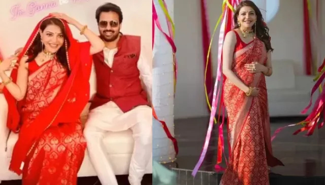 South actress kajal aggarwal welcomed her son Neil Kitchlu with husband Gautam Kitchlu on 19 april 2022 and started her parenthood journey. A baby shower ceremony was hosted for the actress in february 2022 by her in-laws. Kajal picked a red and golden Banarasi saree for the function. She was looking drop dead gorgeous in a golden choker set, kada and with a smile on her face. During this, her pregnancy glow was unmatched. Click here to see all the pictures.