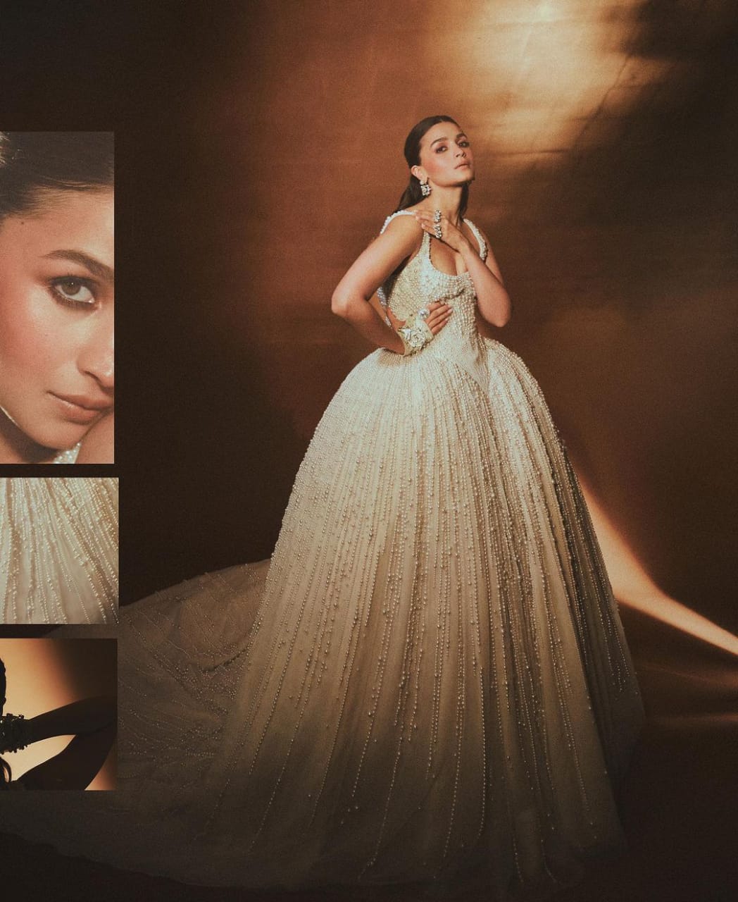 Alia Bhatt's beauty is doubled by this gown which is fully embroidered with pearls. alia Bhatt's smile is more attractive than the white color pearl gown. The gown was made by Prabal Gurang, a clothing fashion company, with around one lakh pearls. alia bhatt shared photos of her first date on Instagram.