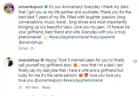 Anand also gave a loving reaction to Sonam's post. Commenting, he wrote, "Yes, it took you 5 years after marriage to finally call yourself my girlfriend." Now that I'm a dad, I can finally tell my dad joke that I have a wife and a girlfriend, but I'm lucky in this case, because they're both the same. love you love you love you @sonamkapoor #everydayphenomenal.