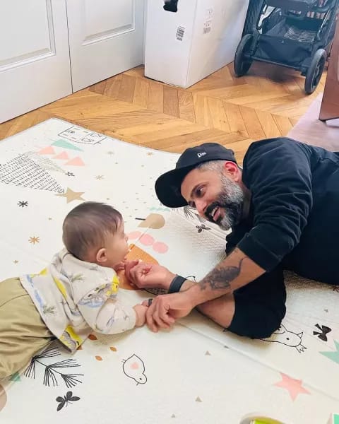 However, what caught our attention was the last picture, in which anand ahuja was seen playing with his son Vayu. One side glimpse of baby Vayu's face can be seen in the picture. Well, this is the first time Sonam hasn't hidden her son's face behind an emoji. In the photo, he is looking cute in a white printed T-shirt and beige pants. At the same time, anand ahuja is seen in an all-black outfit. anand looks very happy playing with his son.