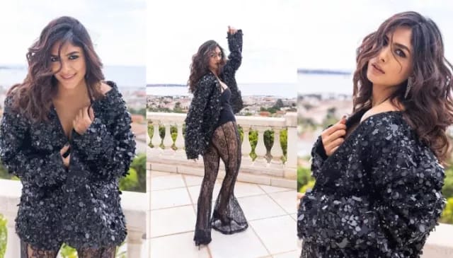 Mrunal Thakur chose a three-piece black outfit on the first day for Cannes. She opted for a sequined jacket over a black swimsuit. He teamed his outfit with transparent pants. We could not take our eyes off this look of the actress.
