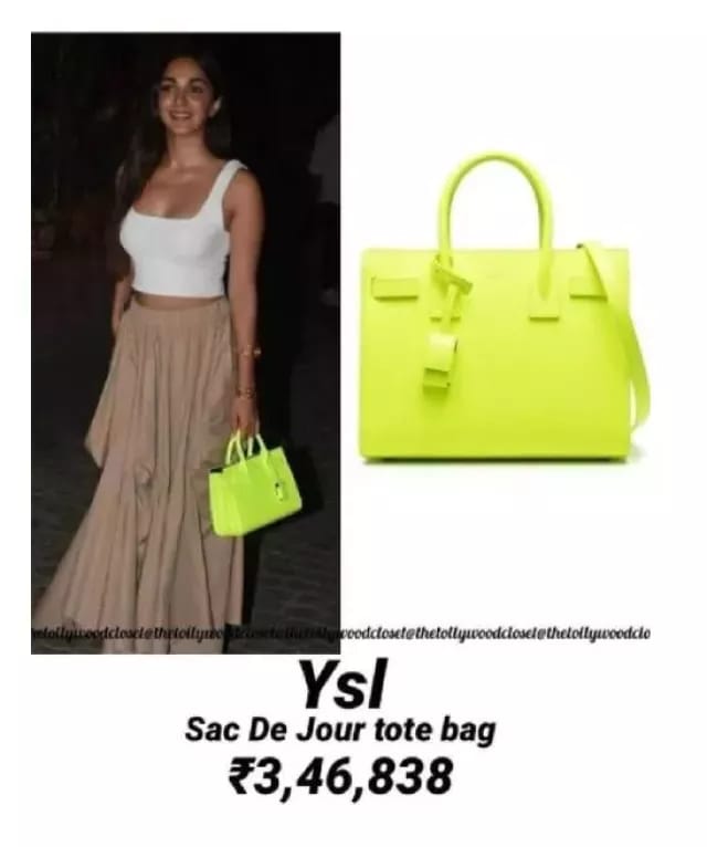 She completed her look with nude base makeup, shine lips, loose hair, a golden bangle and a vibrant neon colored handbag. However, it was her funky bag that grabbed everyone's attention. On doing a little research, we came to know that Kiara's bag is from the brand 'YSL' and is priced at Rs 3,46,838.