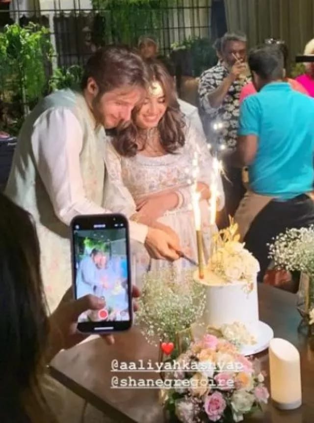 In one of the pictures from the engagement, we can see the newly engaged alia and Shane locking lips. Some other pictures and videos are also going viral on the internet, in which we can get a glimpse of the dreamy decorations of the event. In one of the pictures, the couple is seen cutting a huge white cake, which was decorated with white flowers and gold leaves and candles, and which was very attractive to look at