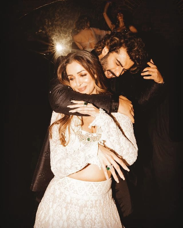 In the middle of the party, it is known that the two got up and danced as a couple. Kapoor Boy mantra is enchanted in Malaika's hug. malaika looks ravishing in a white combination lehenga outfit. She is wearing a favourite green combination of rings on her fingers. Above is a dry dress with the same design. arjun kapoor looks charming in black and black. The Kapoor boy shook his leg with his girlfriend in his own style.