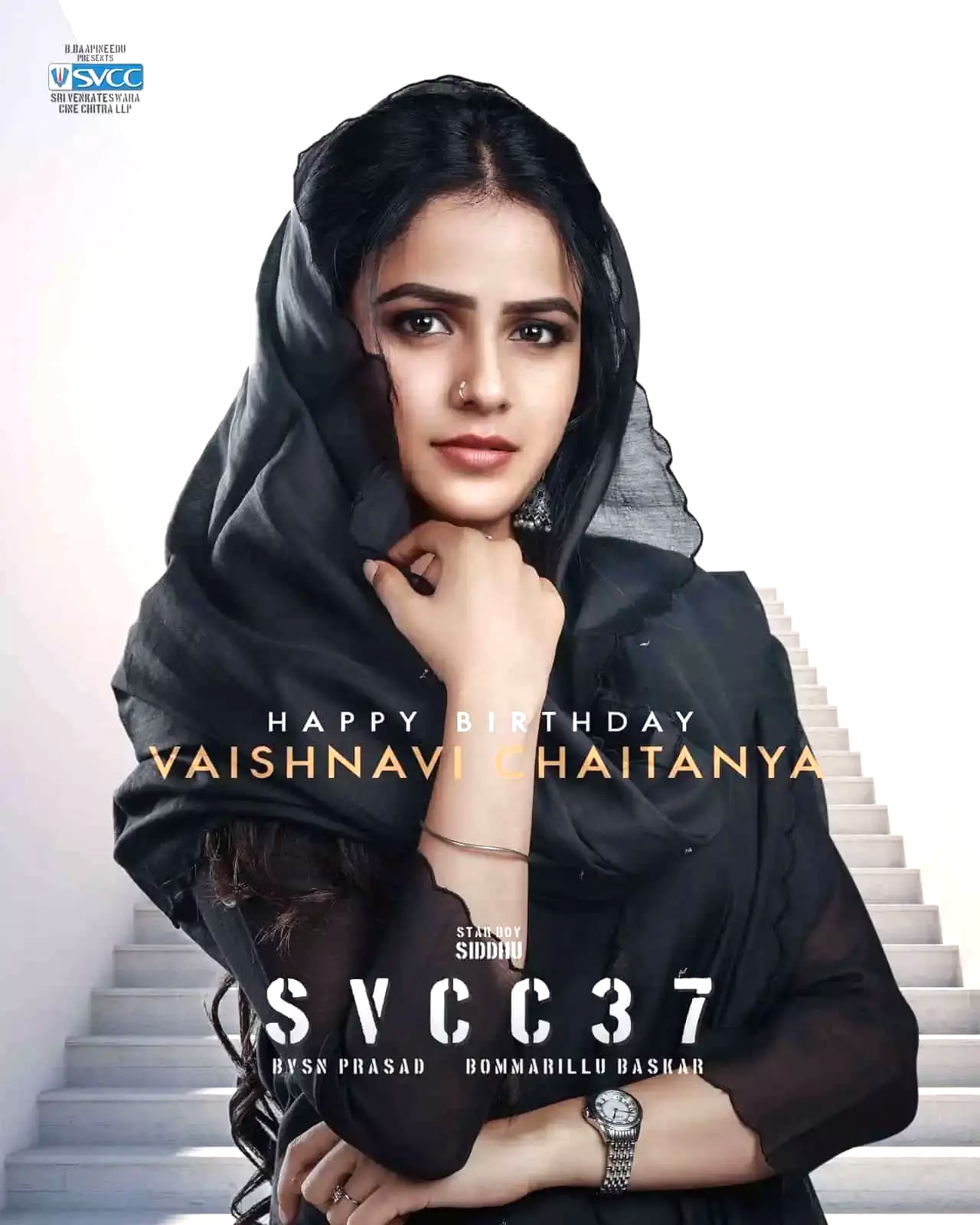 Rumours abound that she has committed to three films under the dil raju banner. A recent official announcement confirmed her participation in a movie produced by BVSN prasad and directed by bommarillu Bhaskar, where she stars alongside Siddu Jonnalagadda. On the occasion of Vaishnavi Chaitanya's birthday, the unit members unveiled the first look poster of her upcoming film.