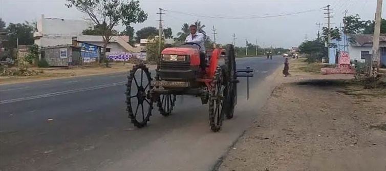 ఖమ్మం రూరల్ మండలం మద్దులపల్లిలో నూతన మోడల్ టైర్లు లేని ట్రాక్టర్ అందరికీ ఆకట్టుకుంటుంది. ఖమ్మం వైపు నుంచి హైదరాబాద్ వేళ్లే రహదారిపై మంగళవారం సాయంత్రం ఒక వ్యక్తి ఈ ట్రాక్టర్ను నడుపుకుంటూ తీసుకెళ్లారు. దీనికి టైర్లు లేకుండా ఎండ్ల బండి లాంటి చక్రాలు ఉండటంతో గ్రామస్తులు దీనిని చూసేందుకు ఎగబడ్డారు. ఇప్పటివరకు ఇలాంటి చక్రాలు ఉన్న ట్రాక్టర్ను చూడలేదని, ఇదే మొదటిసారని అంటున్నారు. ఈ ట్రాక్టర్తో పత్తి, మిరప, మొక్కజొన్న చేలల్లో పాట్లు వేస్తే చెట్లు విరగకుండా ఉంటాయని యజమాని చెప్పాడు.