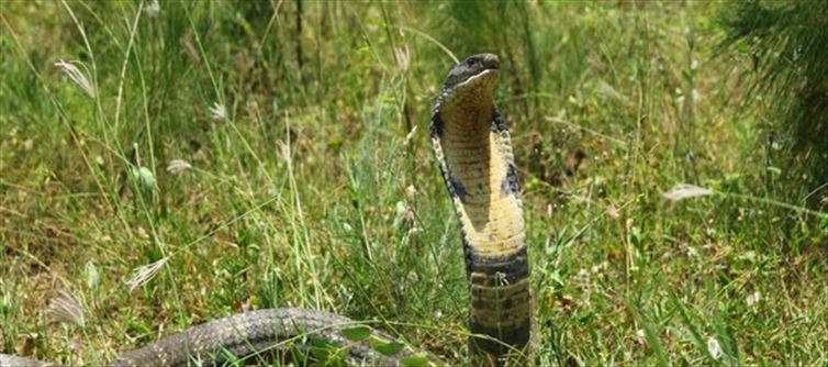 A 15-feet-long king cobra released into Cherukupalli forest after being rescued from Tammadapalli village of Andhra Pradesh's visakhapatnam district