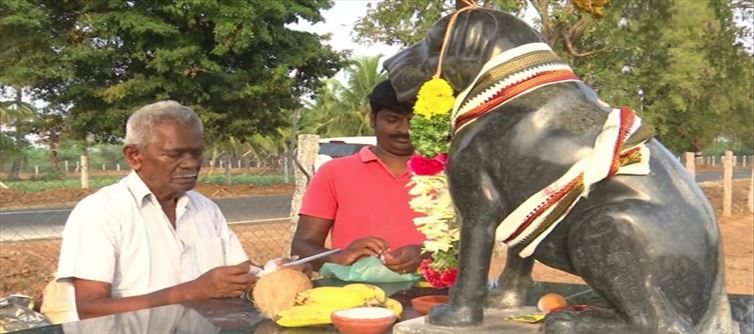 ఓ సినిమాలో ఎస్వీ రంగారావు.. అనగనగా ఓ రాజు.. అనగనగా ఓ రాణి అని ఓ పాట పాడతారు.. అందులో రాజుకు నలుగురు కొడుకులు ఉంటారని.. కానీ వారు వార్థక్యంలో రాజును చూసుకోరని.. రాజు పెంచుకున్న కుక్కే విశ్వాసంగా ఉంటుందని చెబుతారు. పెంపుడు జంతువుల విశ్వాసాన్ని చెప్పే పాట అది. ఇప్పుడు అలాంటి పెంపు జంతువుకు ఓ వ్యక్తి ఏకంగా గుడి కట్టించిన ఘటన ఆసక్తి రేపుతోంది. పెంచుకునే కుక్కకు గుడి కట్టించిన సంఘటన తమిళనాడులో జరిగింది. శివగంగ జిల్లాలోని మనమదురైకి చెందిన ముత్తు అనే రిటైర్డ్ ప్రభుత్వ ఉద్యోగి ఇటీవల చనిపోయిన తన కుక్క కోసం గుడి కట్టాడు. ప్రేమగా పెంచుకున్న కుక్క మరణాన్ని తట్టుకోలేక.. దాని జ్ఞాపకం కోసం ఈ గుడి కట్టాడు. 82 సంవత్సరాల ఈ ముత్తు తన కుక్క టామ్‌కు దాదాపు 80 వేలు ఖర్చు చేసి  పాలరాతి విగ్రహాం చేయించాడు.