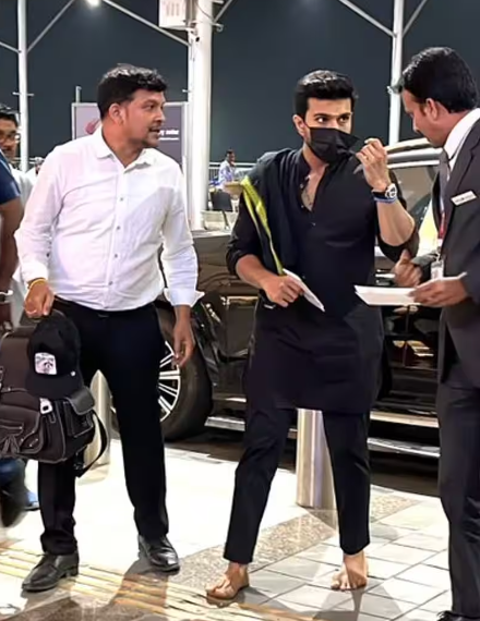 The photos of ram charan wearing a Mazhai for Ayyappan, wearing a black dress, a towel in hand, and with no sandals at the airport are going viral. Ramcharan and Jr. ntr played the main roles in the film RRR. Rajamouli's film revolved around the friendship of freedom fighters sitarama raju and Komaram Bheem. Released as a Pan india film, rrr collected more than Rs 1100 crores at the box office. As the movie has completed a year since its release, the buzz about it has not decreased. RRR at award ceremonies around the world. Awards are piling up for the film. Last month, the Naatu Naatu song featured in the film won the Golden Globe Award for Best Original Song. music composer keeravani won this award. He was also praised. Next to this, the rrr film crew is targeting the oscar award. As the Naatu Naatu song has progressed to the final round, it is considered to have a high chance of getting an award at the Oscars to be held next month. For this R.R.R. stars of the film have started to invade America. music composer keeravani has already camped in America, and now the hero of the rrr film Ramcharan has left for America today. The pictures taken of him when he arrived at the airport are going viral on social media. Now Ramcharan, who wore Iyyapan Mazhai, is taking over social media when he arrived at the airport wearing a black dress, towel in hand, and no sandals on his feet. It is said that Jr. ntr and rajamouli will also go to America soon. It is noteworthy that the oscar award ceremony will be held in the united states on march 12.
