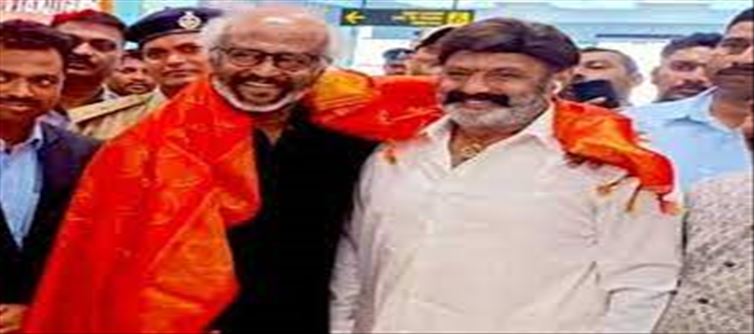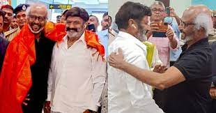 Today morning, the famous actor Rajinikanth travelled to vijayawada, Andhra Pradesh, to attend the centennial celebrations of the legendary telugu actor N. T. Rama Rao. The son of ntr and telugu superstar Nandamuri balakrishna gave him a rousing welcome. Photos and videos of the chance encounter between the two eminent actors at the airport rapidly went viral on social media, generating excitement among fans.