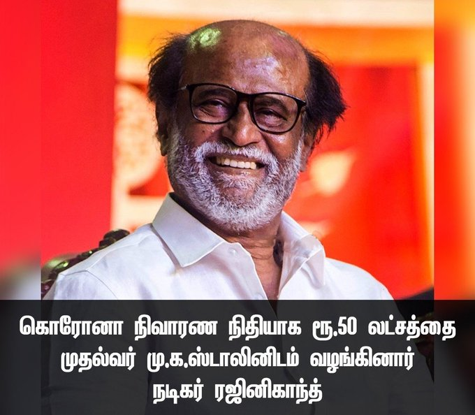 Actor rajinikanth who is fondly called 'Super Star' by fans has met tamil Nadu chief minister MK stalin in person and has donated a huge sum of Rs.50 Lakhs for cm Relief Fund in the battle against Corona Virus. Earlier, Rajinikanth's daughter soundarya donated Rs.1 Crore along with her husband. rajinikanth clearly understood the gravity of the situation and the frontline workers who are fighting against this deadly virus.