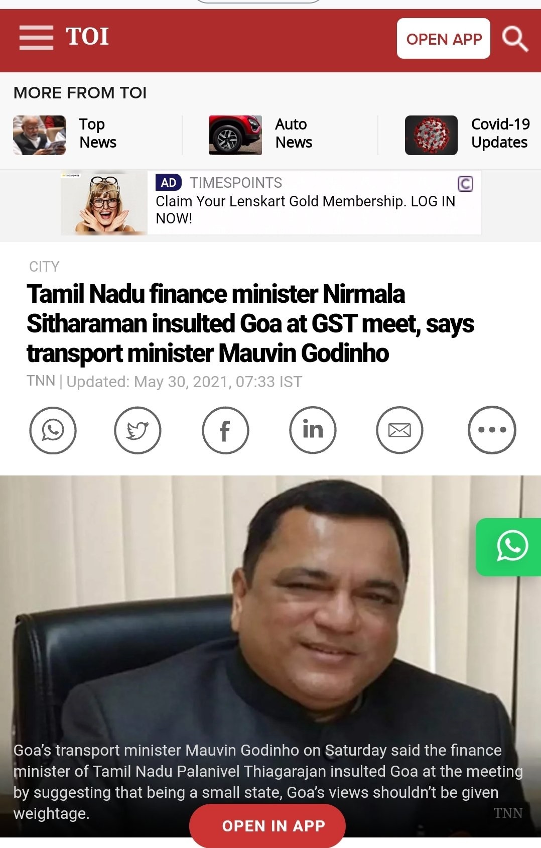 This issue came out as TN FM said that more attention should be given to the sentiments of the bigger states, rather than smaller states like Goa. When this issue was posted in the TOI newspaper, they have mentioned Nirmala Sitaraman as tamil Nadu Finance minister instead of PTR and the Finance minister himself tweeted that and laughed about it.