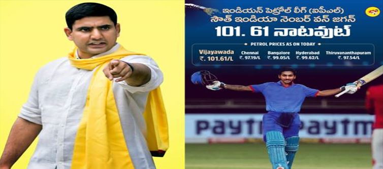బాదుడురెడ్డి దెబ్బ‌కి పెట్రోల్ ధ‌ర శుక్రవారం ద‌క్షిణాది రాష్ట్రాల‌లో సెంచ‌రీ దాటి  (రూ.101.61) నాట‌వుట్‌గా రికార్డులు సృష్టించిందని తెలిపారు. అభివృద్ధిలో అట్ట‌డుగు స్థానం, కోవిడ్ కేసుల్లో 5వ స్థానానికి చేర్చార‌ని పేర్కొన్నారు.పెట్రోల్ ధ‌ర‌ల పెంపులో సౌత్‌లో ఆంధ్ర‌ప్ర‌దేశ్ ను నెంబ‌ర్‌వ‌న్‌గా నిలిపారంటూ ఆరోపించారు. ఇది జ‌గ‌న్ రెడ్డి పాపం..ప్ర‌జ‌ల‌కు శాపమంటూ లోకేష్ సంచ‌ల‌న వ్యాఖ్య‌లు చేశారు.