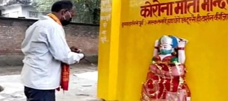 కరోనా మహమ్మారిని తరిమికొట్టాలంటూ ఉత్తరప్రదేశ్లో నిర్మించిన ఆలయాన్ని కూల్చివేశారు. దీనిపై అధికారులు, గ్రామస్తుల మధ్య వాదన జరుగుతోంది. ప్రతాప్గఢ్ సమీపంలోని జూహి షుకుల్పూర్ గ్రామంలో ప్రజలు "కరోనా మాత" ఆలయాన్ని ఈనెల ఏడోతేదీన నిర్మించారు. ఈ ఆలయాన్ని పోలీసులే పడగొట్టారని, ఆలయం స్థలంకు సంబంధించిన వివాదంలో ఒకరికి మద్దతుగా ఇలా వ్యవహరించారంటూ గ్రామస్తులు ఆరోపిస్తున్నారు. నోయిడా నివసించే లోకేష్కుమార్ శ్రీవాస్తవ గ్రామస్తుల నుంచి విరాళాలు సేకరించి ఈ ఆలయాన్ని నిర్మించారు. అదే గ్రామానికి చెందిన రాధేశ్యామ్వర్మను పూజారిగా నియమించారు. ఐదురోజుల వ్యవధిలోనే దేశవ్యాప్తంగా ఈ దేవాలయం ప్రాచుర్యం పొందింది. ఆలయం నిర్మించిన భూమిలో లోకేష్తోపాటు నాగేష్కుమార్ శ్రీవాస్త, జైప్రకాష్ శ్రీవాస్తవకు కూడా వాటా ఉందని, ఎవరికి మద్దతుగా ఈ ఆలయాన్ని నిర్మించారనేది ఇప్పటివరకు తెలియడంలేదంటూ ప్రజలు ఆవేదన వ్యక్తం చేస్తున్నారు.