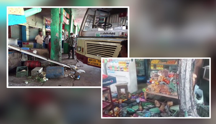 The bus even rammed the wall and started to go inside a nearby shop. Malarkodi, a woman who was inside the shop never expected such a big vehicle to enter her little shop and before she recovered from the shock, the bus crashed inside her shop and luckily she escaped with injuries. However, her entire shop was destroyed and all the products were also broken. The police have filed a case and are making an enquiry with the bus driver regarding this brake failure incident.