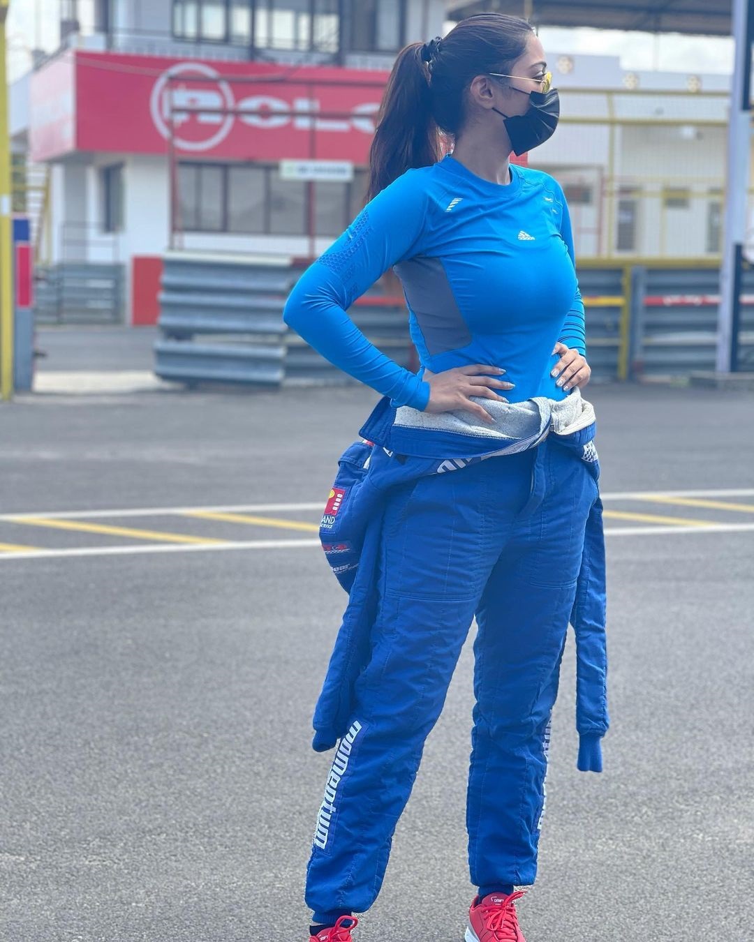 We can see nivetha takes out a car and goes for a spin on the track itself. She was absolutely looking like a racer in the blue race suit and in another photo she was totally chic while she was taking a peek on the race track. This rider avatar is completely new for nivetha pethuraj and she revealed she wanted to explore the unexplored side. She also clarified that she is not going for any race and this is just another dream and a vision in her life.