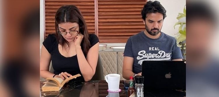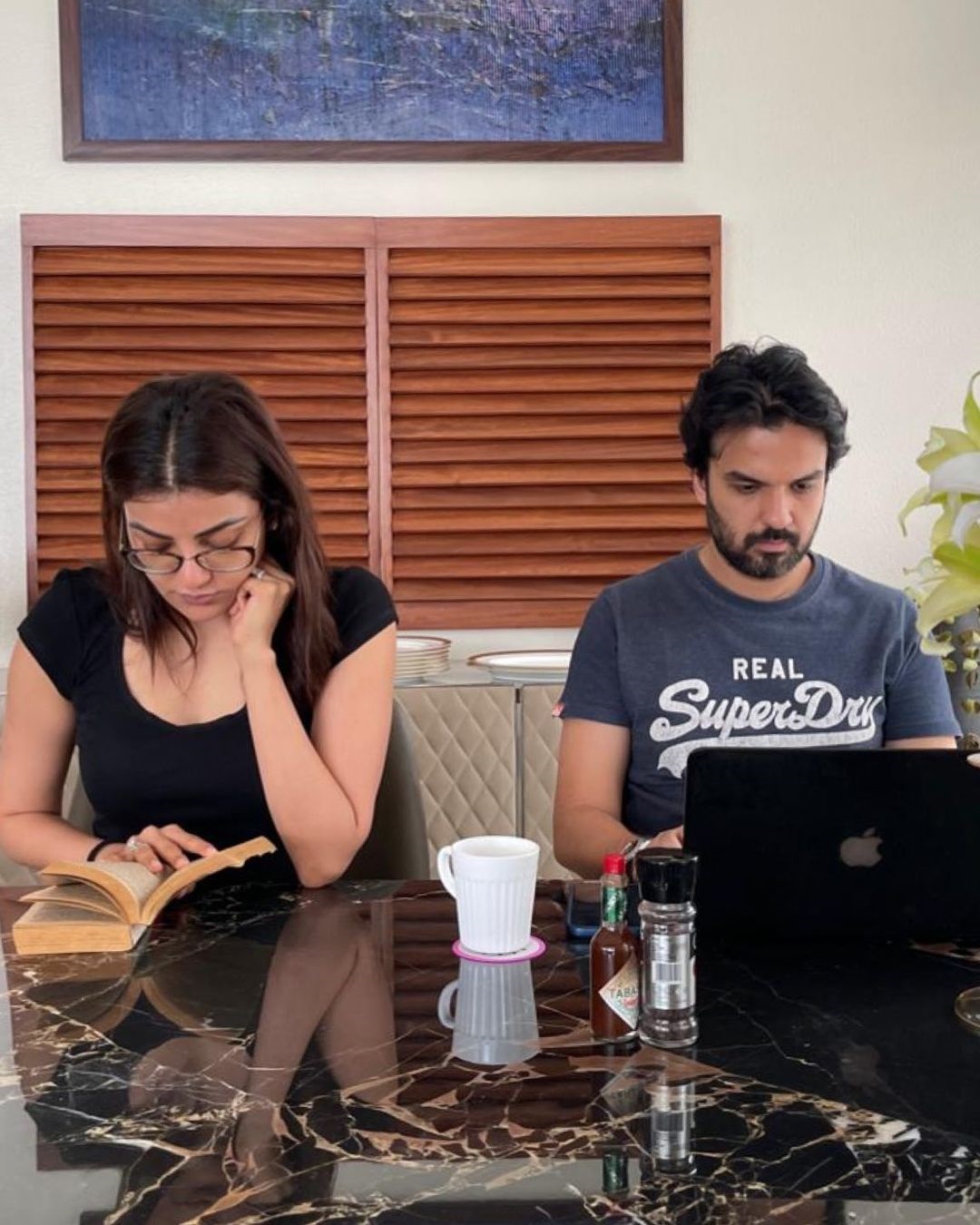 In this pandemic situation, star couple kajal aggarwal and her husband gautam Kitchlu have some variety of stories to convey in this pandemic and gautam shared a picture of them both seated together and doing separate jobs and he asked his followers in instagram profile account to caption the photo with their own creative ideas.