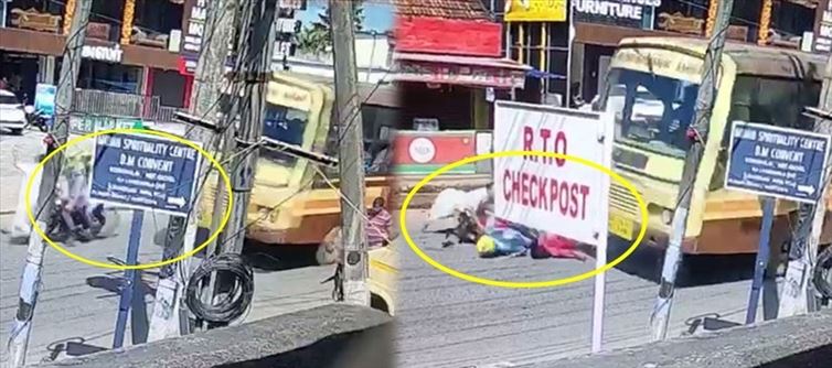 CCTV footage shows a two-wheeler trying to overtake a government bus in Kaliyakkavilai, Kanyakumari district, collided with the passenger bus and as the youngsters fell on the road, the bus got on and off them and both of them were crushed to death instantly. The CCTV footage of this road accident where both youngsters are crushed to death is sending shivers to everyone who has seen it.