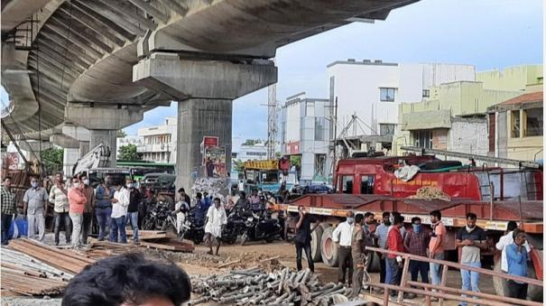 At exactly 5.25 pm, a 35-meter-long concrete girder between the two pillars collapsed due to a technical glitch. The concrete girder, which weighed several hundred tons, collapsed in two with a terrifying noise, and all the workers were scattered on all four sides as they worked under the granite bridge in anticipation of the collapse of the concrete curb. Unfortunately, some workers were trapped in the rubble and the rescue crews sent them to a madurai government hospital for treatment and in this, unfortunately, one of them died.