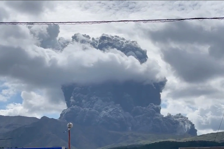 air over the remote region but inflicting no harm or casualties. Shindake volcano on Kuchinoerabu island, some 1,200 kilometres southwest of Tokyo, erupted at 9:31 a.m., according to the