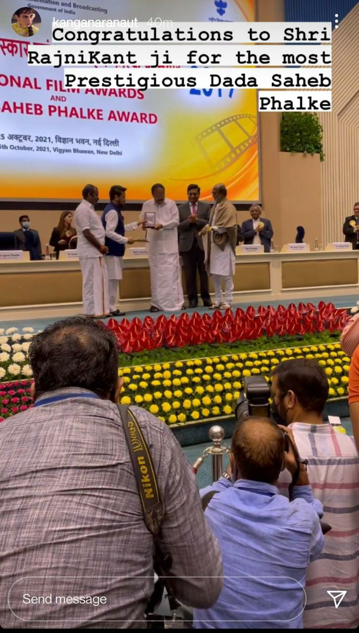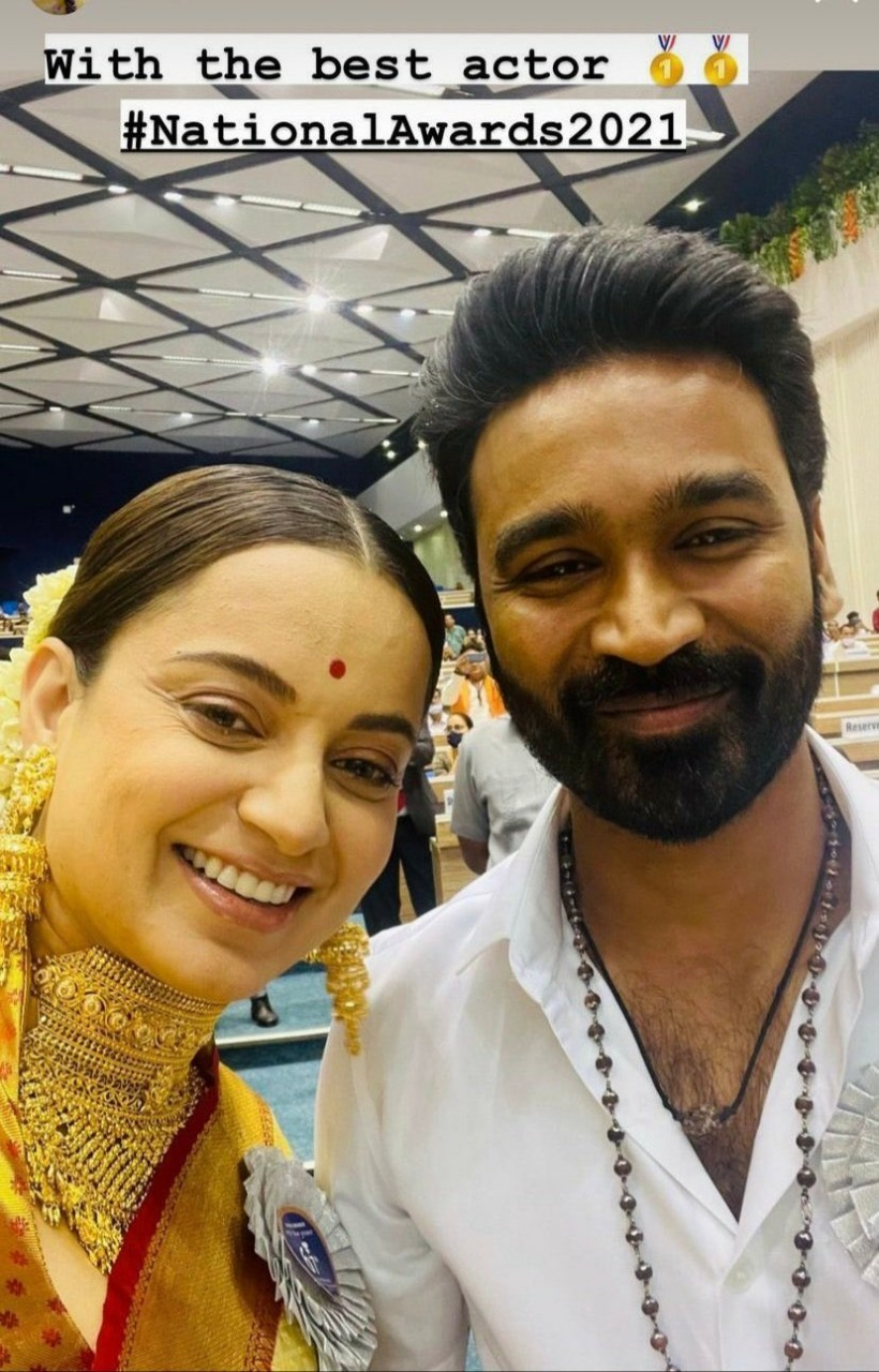 Yesterday, the 67th National Film Awards have been hosted at Delhi's Vigyan Bhawan. The gala celebration was graced by superstar Rajinikanth, dhanush, kangana ranaut, Manoj Bajpayee, including some from the movie industry. Vice President M venkaiah naidu delivered the awards. kangana took a picture with dhanush after the event and captioned it, "WIth the leading actor." When questioned, she smiled and said, she accepts him as the best actor.