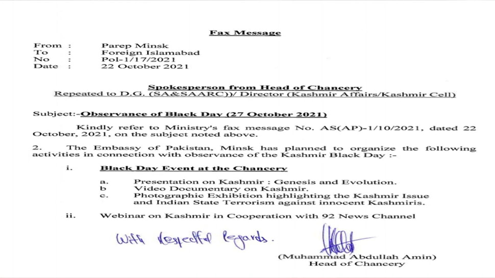 Pakistan has also sent fax messages to all of its embassies with a schedule of events for october 27. In addition, a dedicated fund has been established for this purpose. All of these nations have been urged to host webinars on kashmir, in which incidents of alleged human rights violations by indian security forces would be discussed.