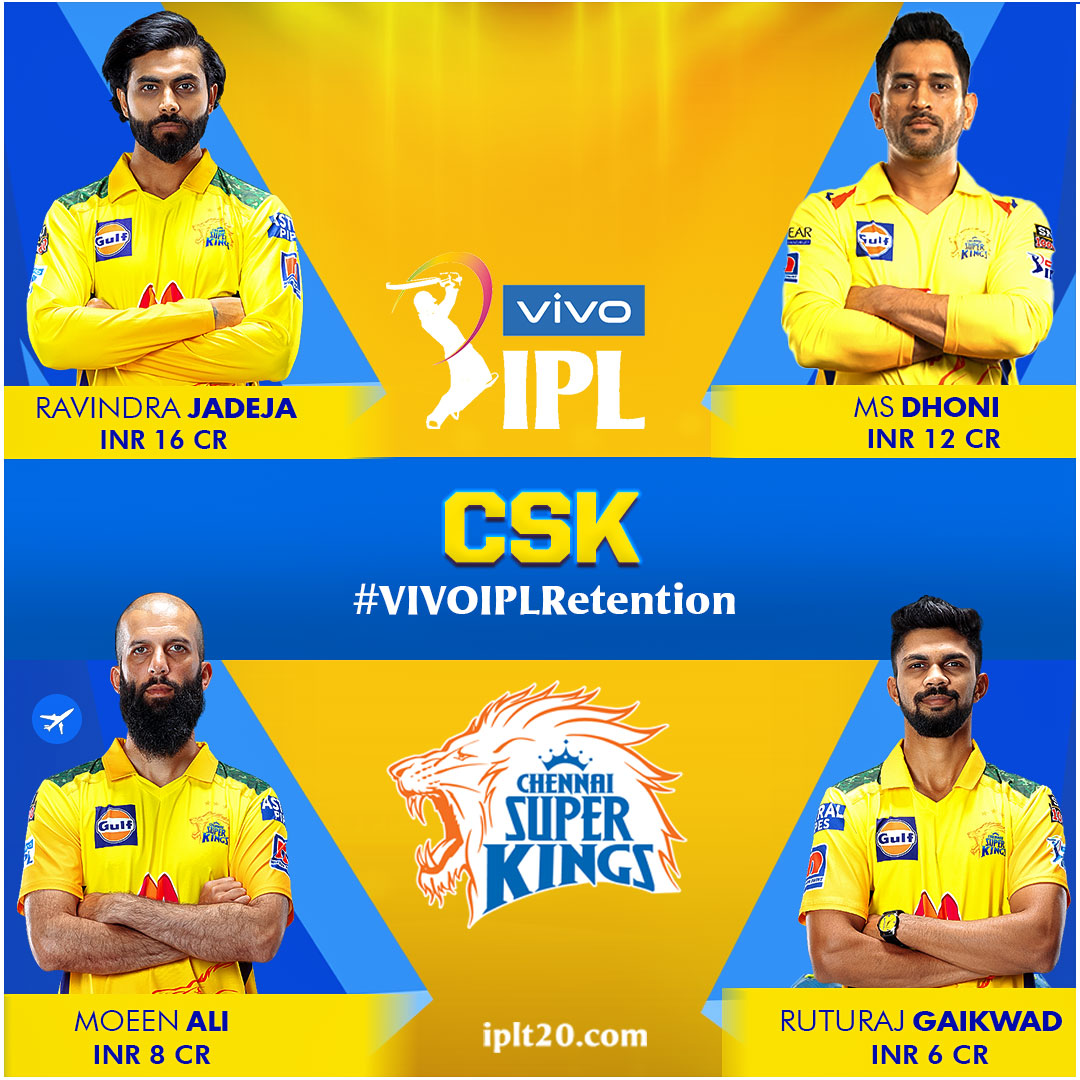 Today marks the last date for franchisees who have to submit the final list of retained players. The final list has to be submitted before the IPL Auction. The IPL 2022 has expanded with the addition of two new teams namely lucknow and Ahmedabad. The previous teams will be playing against the new contenders which adds the extra bit of competitiveness. The new team ahmedabad can pick three players starting december 1st. They can spend around  INR 33 crore for each player. The first player INR 15 crore, second player INR 7 crore, and third player INR 7 crore. Two indian players have to be in the three players. The CSK Retained players are: