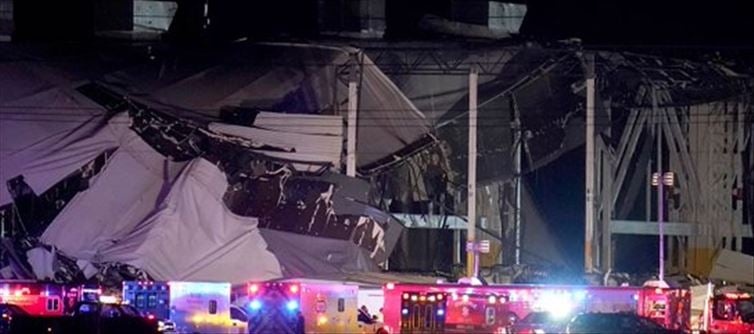 According to media reports, the candle factory in the Mayfield area has been badly damaged by the storm. It is being told that when the storm hit the factory, at that time more than 100 people were working in it. Rescue operation is going on here.
