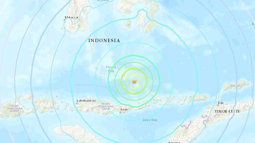 At 10:20 a.m. local time, the earthquake struck at a depth of 18.5 kilometers (11 miles) in the Flores sea, according to the USGS (10:20 p.m. ET). "Hazardous tsunamis are possible for coastlines located within 1,000 kilometers (621 miles) of the earthquake epicenter," the Pacific tsunami Warning Center stated, based on the preliminary seismic statistics.