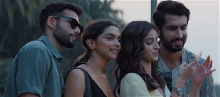 Shakun Batra begins stripping the layers of Alisha, Tia, and Zain's characters as the four meet in a lovely backdrop of the Arabian sea, luxurious mumbai flats, and a beach-front property as the four meet. As seen in the teaser, Alisha and Tia are cousins who have grown up alongside but as life gets in the way, they drift apart and their stark reality now stand in between them. Batra produces multiple unpleasant situations, which can be felt in every shot. This unease is shared by deepika as Alisha and ananya as Tia on several occasions.